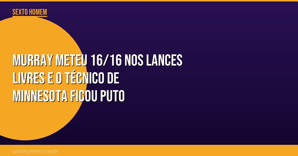 Pra vocês terem ideia do absurdo: o time INTEIRO de Minnesota foi 19 vezes na linha. O Murray sozinho foi quase tantas vezes quanto o time adversário completo. Chris Finch, técnico dos Wolves, não conseguiu engolir essa.