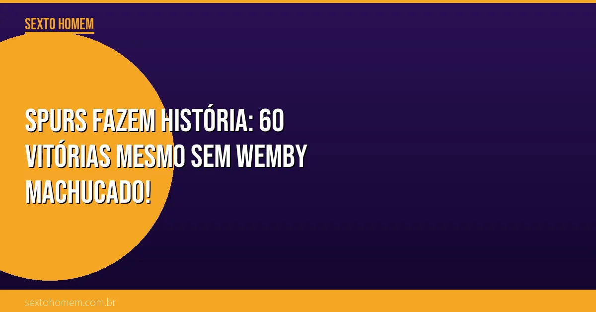 Olha, eu não acredito no que acabei de ver. Os Spurs chegaram às 60 vitórias na temporada mesmo com Victor Wembanyama saindo machucado no segundo quarto! Bateram os 76ers por 115 a 102 em casa e fizeram história.